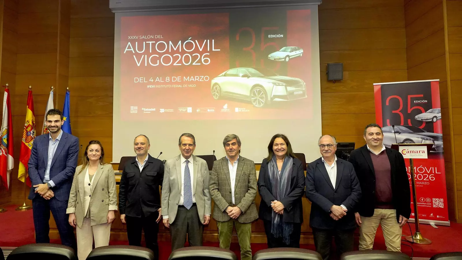 El Salón del Automóvil de Vigo presentó ayer en la sede de la Cámara de Comercio de Pontevedra, Vigo y Vilagarcía de Arousa su trigésimo quinta edición, que se celebrará en el Ifevi del 4 al 8 de marzo. Durante estos cinco días, el recinto ferial reunirá unas 55 marcas de coche confirmadas, cifra récord y que consolida al Salón como uno de los principales escaparates comerciales del sector en la zona.