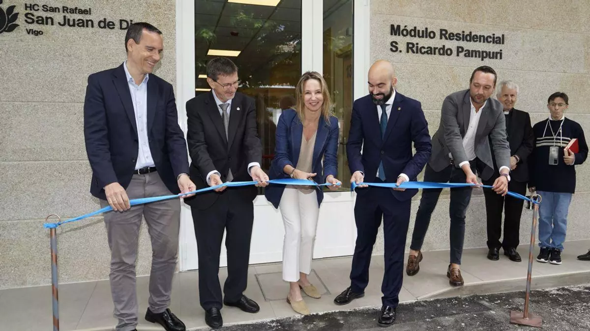 El alcalde de Vigo, Abel Caballero, y la delegada territorial de la Xunta en Vigo, Marta Fernández-Tapias, acompañados por el director xeral de Personas con Discapacidade, Fernando González Abeijón, el Superior Provincial de San Juan de Dios de España, el hermano Amador Fernández, entre otras autoridades y representantes del tejido socioeconómico vigués, inauguraron ayer el nuevo módulo residencial del Hogar y Clínica San Rafael que se destinará a la atención de las personas usuarias del centro con mayores necesidades de apoyo y asistencia.