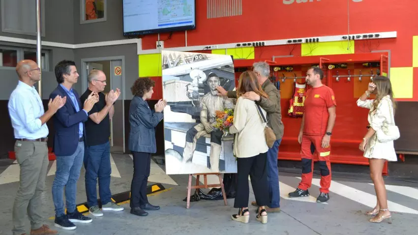 En el acto en el Parque de Bomberos de Santiago, celebrado por la mañana, se descubrió una placa conmemorativa y un retrato del joven, realizado por el también bombero de Vigo y muralista, Néstor Reinaldo.