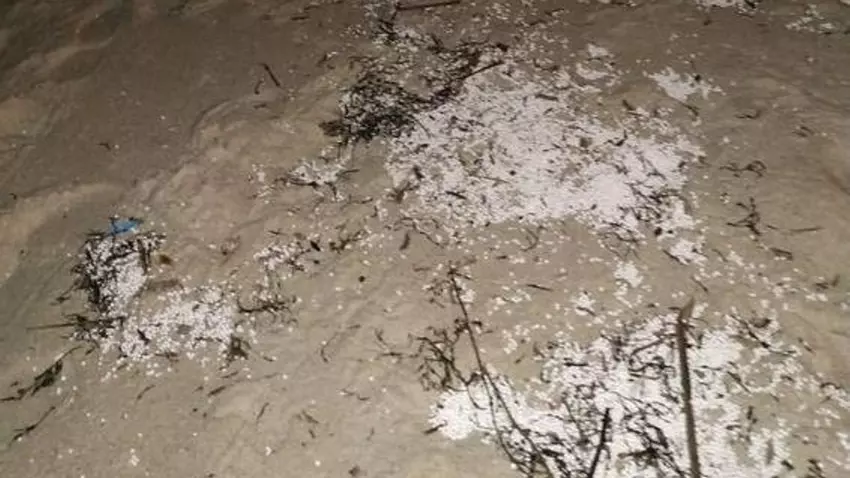 A principios de semana, los vecinos de la zona pudieron observar distintas partes de la desembocadura del Lagares y la playa cubiertas con poliespan, imágenes que llegaron a captar.