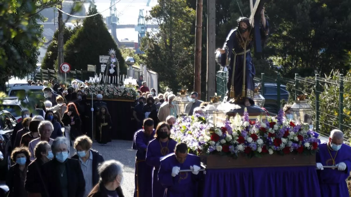 Los hombres portaron al Cristo y las mujeres, a la Virgen desde el Camiño Real a la Avenida de Galicia para volver al Divino Salvador