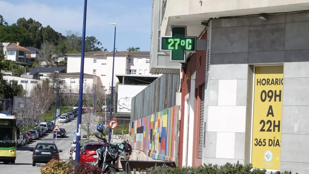 La primavera ya se nota en Vigo. Después de las bajas temperaturas del comienzo de mes, ayer marcaron la máxima del año, con 23,5 grados, aunque en los termómetros a pleno sol disparasen sus cifras como el de la imagen. El registro más alto de Galicia se obtuvo en Pontevedra con 25,2. La situación meteorológica se mantendrá estable en lo que queda de semana, aunque a partir de lunes aumentan las posibilidades de precipitaciones.