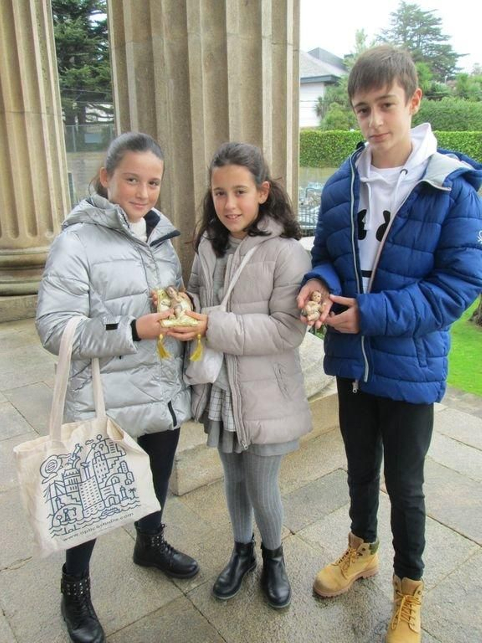 Sofía, Patricia y Nico con las figuras.