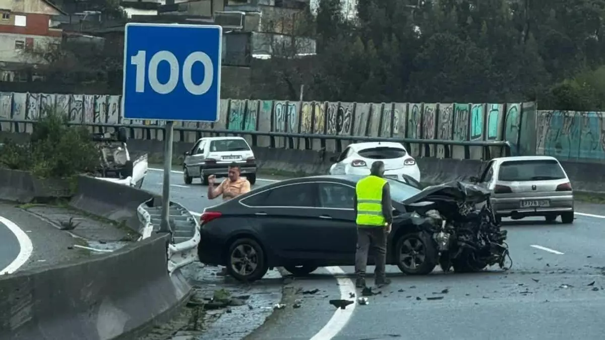 Tres vehículos implicados en un aparatoso accidente en la VG-20 de Vigo