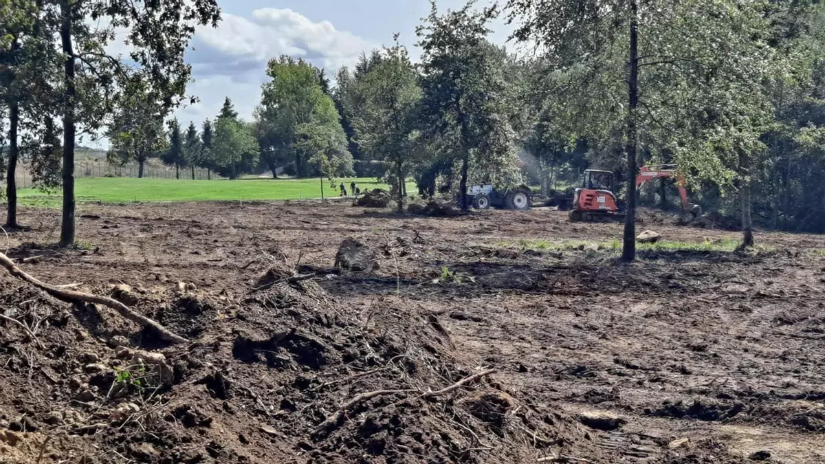 En este caso, el informe del Ayuntamiento refleja que se realizaron sin licencia talas de árboles, trabajos silvícolas y movimientos de tierra en un área de 7.652 metros cuadrados. La resolución ordena a la empresa Rogaem Group la suspensión inmediata de esas actividades y la retirada de los materiales y de la maquinaria afectos a las mismas, con el apercibimiento de que, si no cumple esta orden, se procederá al precintado de las obras o a la ejecución forzosa mediante multas coercitivas de entre 1.000 y 10.000 euros. La actuación se realiza en el entorno del campo del Aero Club, que fue reducido de forma drástica por necesidades de seguridad del aeropuerto, perdiendo cuatro hoyos. Con la ampliación, que asume la Comunidad de Montes, se recuperaría su tamaño mínimo.