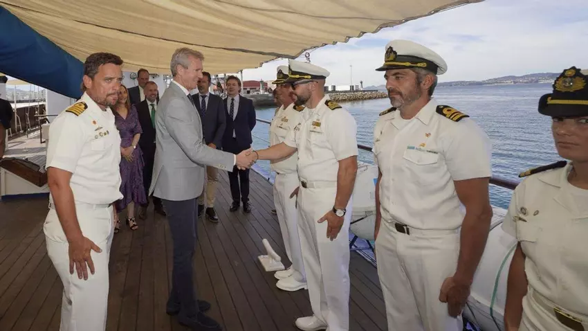 Galicia y Uruguay, unidos en el tiempo a través de la emigración. El presidente de la Xunta, Alfonso Rueda, visitó ayer el buque-escuela atracado en Vigo de bandera uruguaya “Capitán Miranda” para conocer los entresijos y la tripulación en un barco cuya construcción data de 1930. De 80 metros de eslora, estará disponible para visitar hasta mañana gracias a la cita Iacobus Maris, que atrae a varias embarcaciones al Puerto como el “Vera Cruz” portugués o el “Evangelina” español.