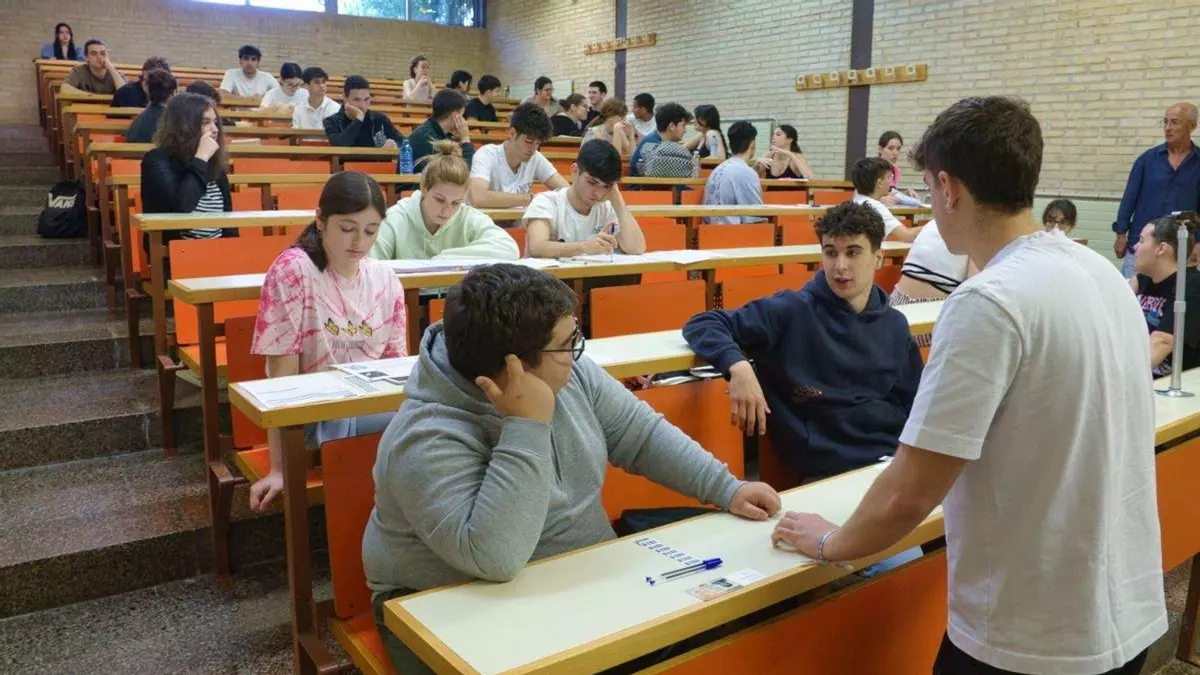 Estudiantes preparándose para un examen de la ABAU en el campus de Vigo.