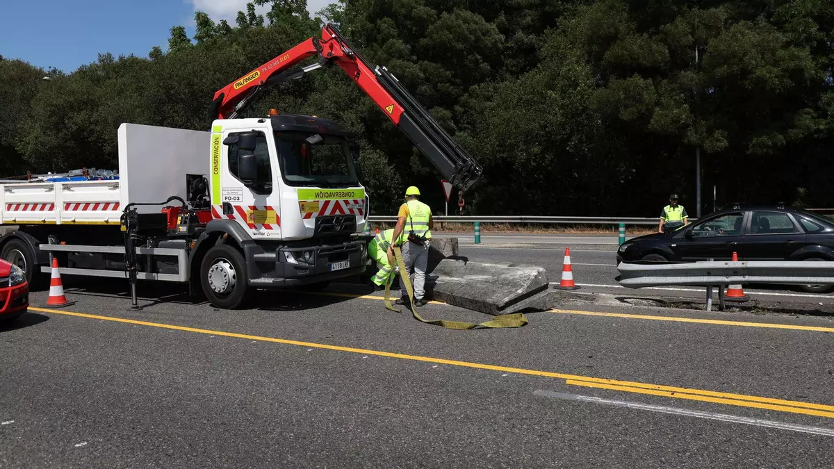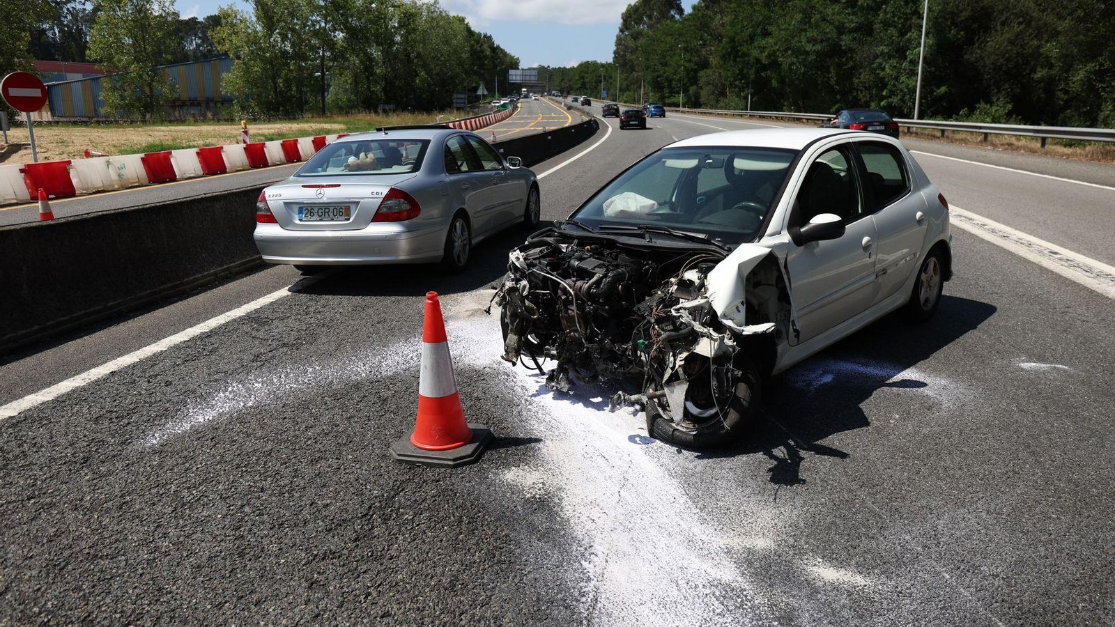 Un vehículo choca contra la mediana en la A-55 a la altura de Mos