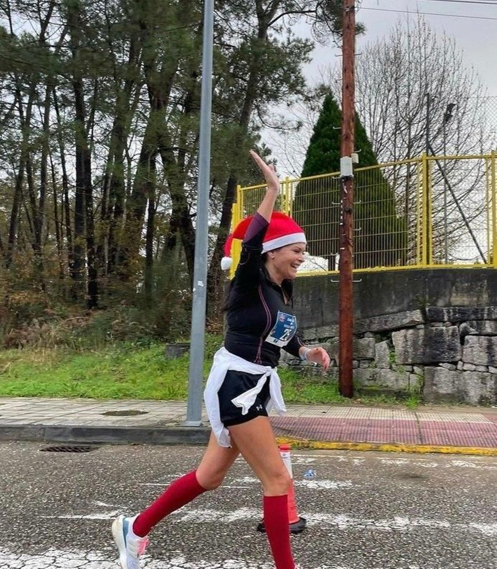 Mucho más calurosa les muestro a la alcaldesa de Mos, Nidia Arévalo, que logró su primer podio en la carrera solidaria que celebró el municipio para despedir el año. Ahí la tienen, saludando antes de recibir la medalla de bronce.