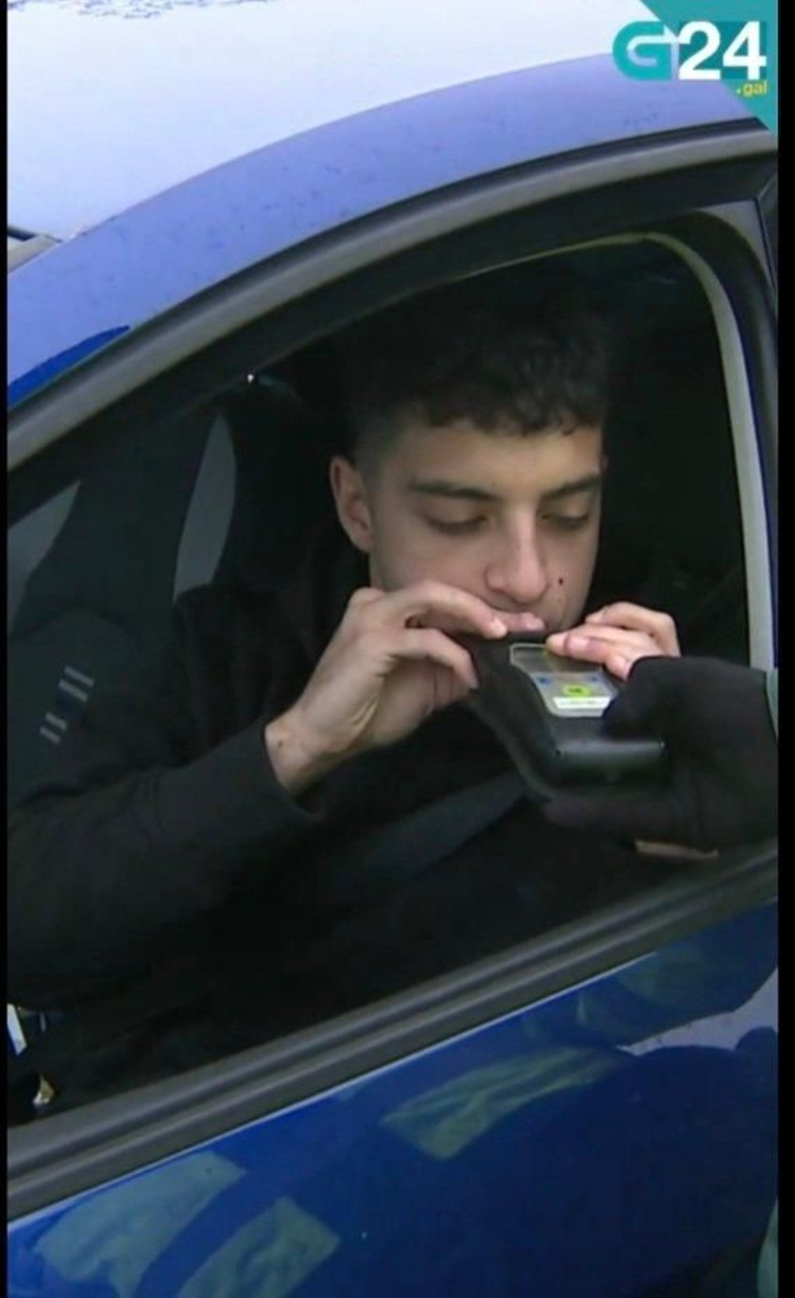 Una de mis enviadas captó este momento de un reportaje de la TVG sobre los controles de alcoholemia en carretera con el canterano del Celta Hugo Álvarez. Todo bajo control.