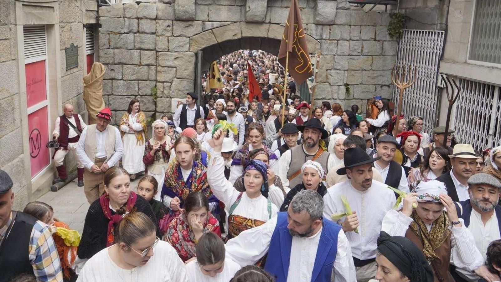 Entre los asistentes a la representación estuvo presente gran parte del gobierno local, ataviados de época para la ocasión, y también el alcalde Abel Caballero, que se dirigió al público en la Porta do Sol para reivindicar que durante esta “gran fiesta de Vigo” la plaza “se nos queda ya pequeña, ya no cabemos aquí, hay más gente que en ninguna otra fiesta de Galicia”.