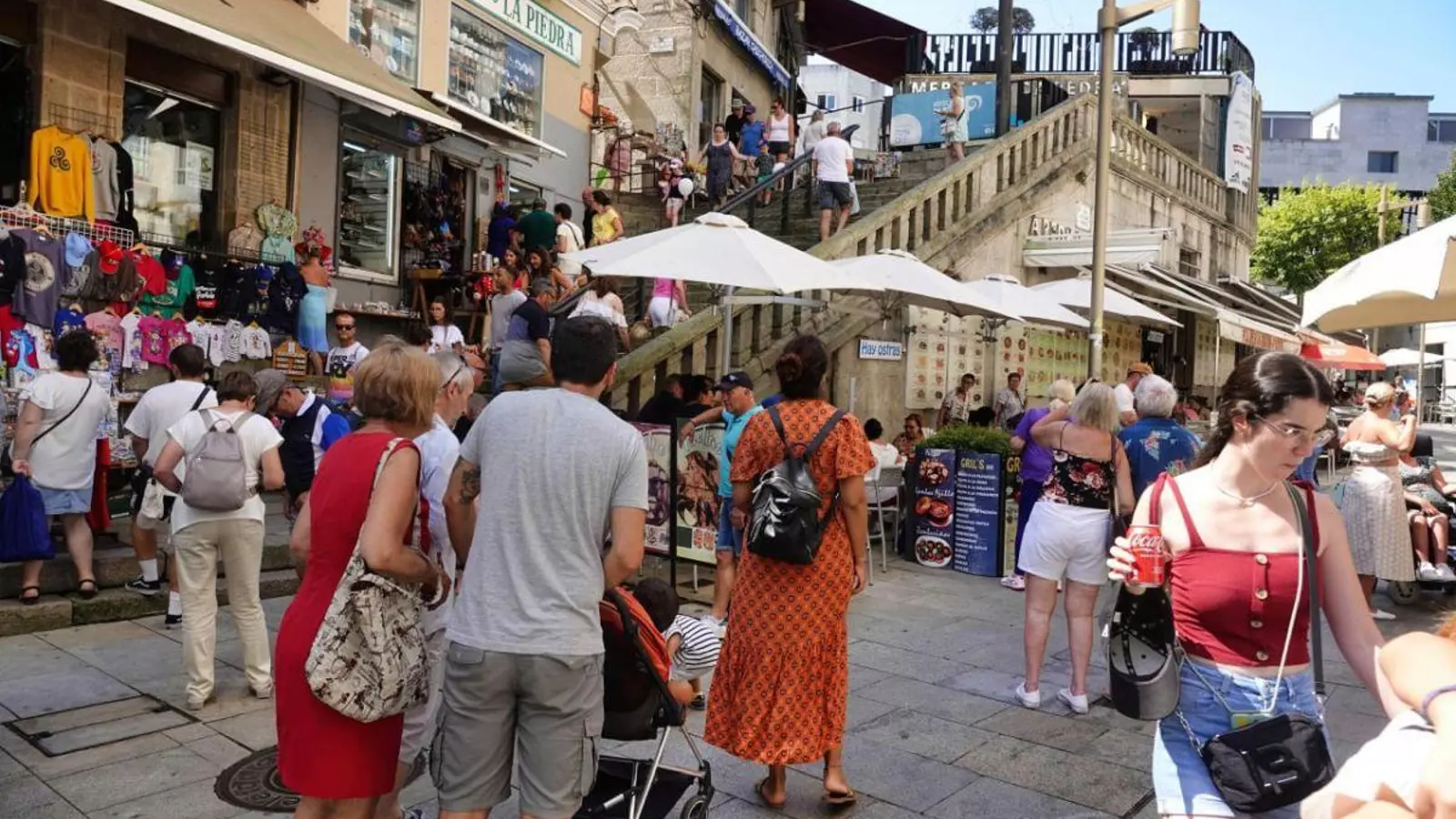 En Galicia, el primer puesto en ocupación hotelera en julio fue un año más para Sanxenxo, la auténtica capital del verano gallego, villa que también cuenta con el mayor número de hoteles, 162, y de plazas, 8.875. Y más de 2.000 viviendas turísticas. En agosto, con seguridad superará dichas cifras, pero el resto del año la actividad en Sanxenxo baja en picado, por lo que no compite con Vigo, A Coruña y Santiago. En julio, en la capital compostelana se anotaron casi 180.000 alojamientos, solo algo menos que en Sanxenxo. A Coruña se quedó ligeramente por debajo de las cifras viguesas, con unas 103.000 noches de hotel registradas por el INE: Vigo y Coruña compiten en el total anual por la segunda posición total, con ventaja para la mayor ciudad gallega gracias al tirón de Navidad. O Grove, otro punto turístico clásico, sumó 57.000 pernoctaciones, una buena cifra aunque lejos del resto.