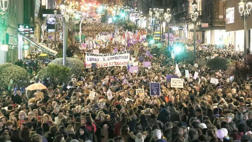 Si la manifestación del pasado domingo fue impresionante la de ayer, 8 de marzo, fue brutal. Fue más una superconcentración por todo el centro de Vigo que una marcha, ya que cuando la cabecera llegó a su meta, en la Porta do Sol, la cola seguía parada en la plaza de Portugal y ocupaba toda la calle Urzaiz y Policarpo Sanz. Más de 45.000 personas según los datos de la Policía Local.
