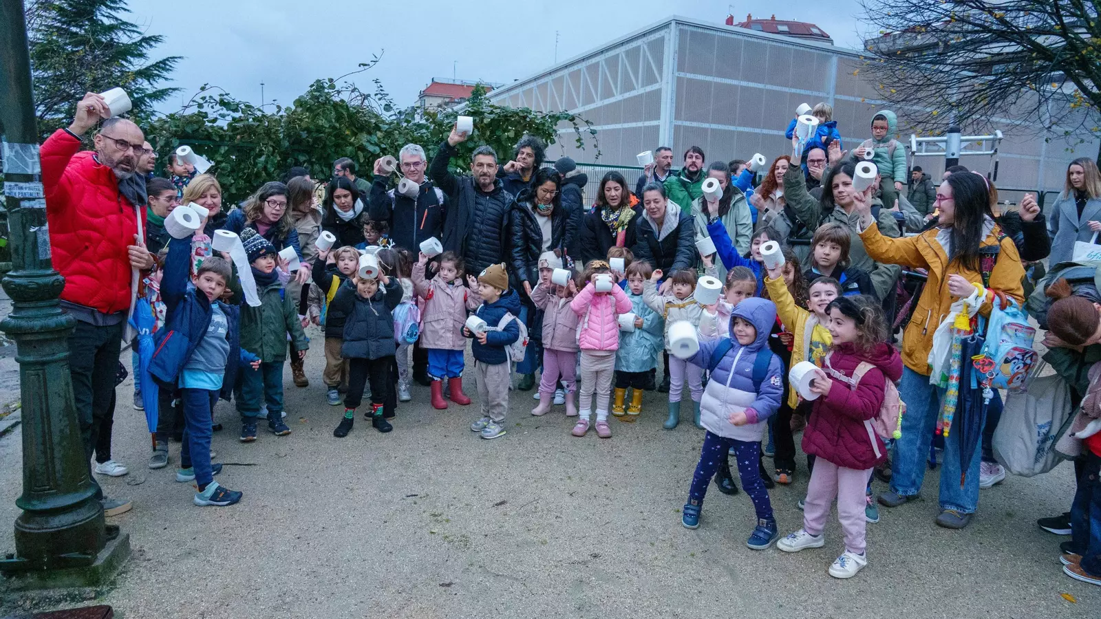 Así, a modo de protesta pacífica, padres y niños acudieron a la entrada del centro cargados de decenas de rollos de papel higiénico para que se les escuche.