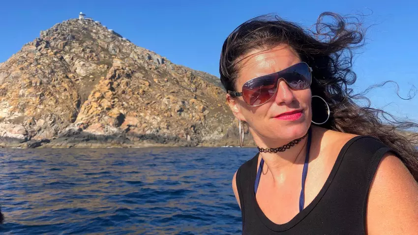 Rebeca Rods, junto a las islas Cíes, con un disco a punto de salir y una cartera llena de proyectos, repite aventura este sábado para cantar y navegar